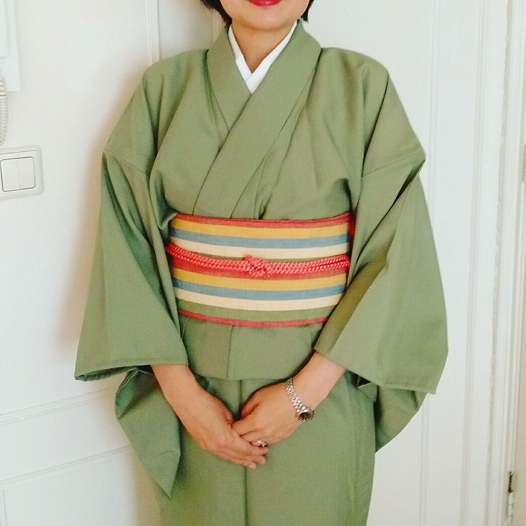 ナイロン着物&半幅帯というカジュアルスタイルですが、海外ということで勘弁してください。