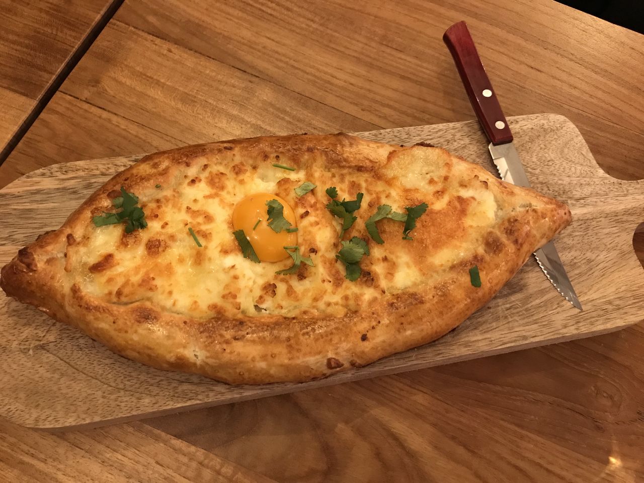 ↓こちらの記事によると、我々が食べたのはアジャラ・ハチャプリ(卵を乗せた船型成型)だったよう。