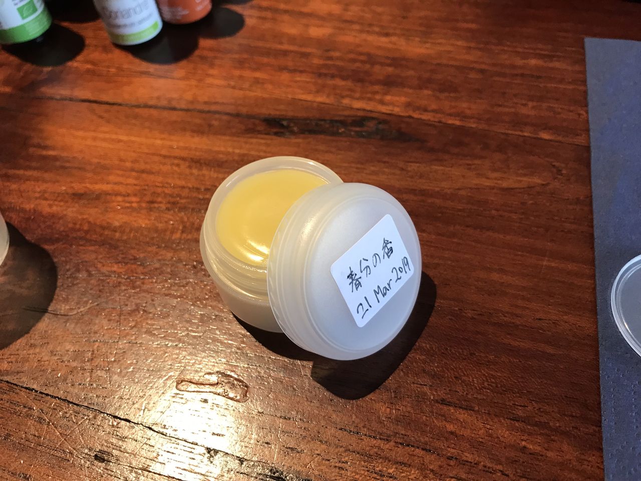 本来は使用しているオイルの備忘録などをラベルするのですが、私は記念に「春分の香」と書きました。